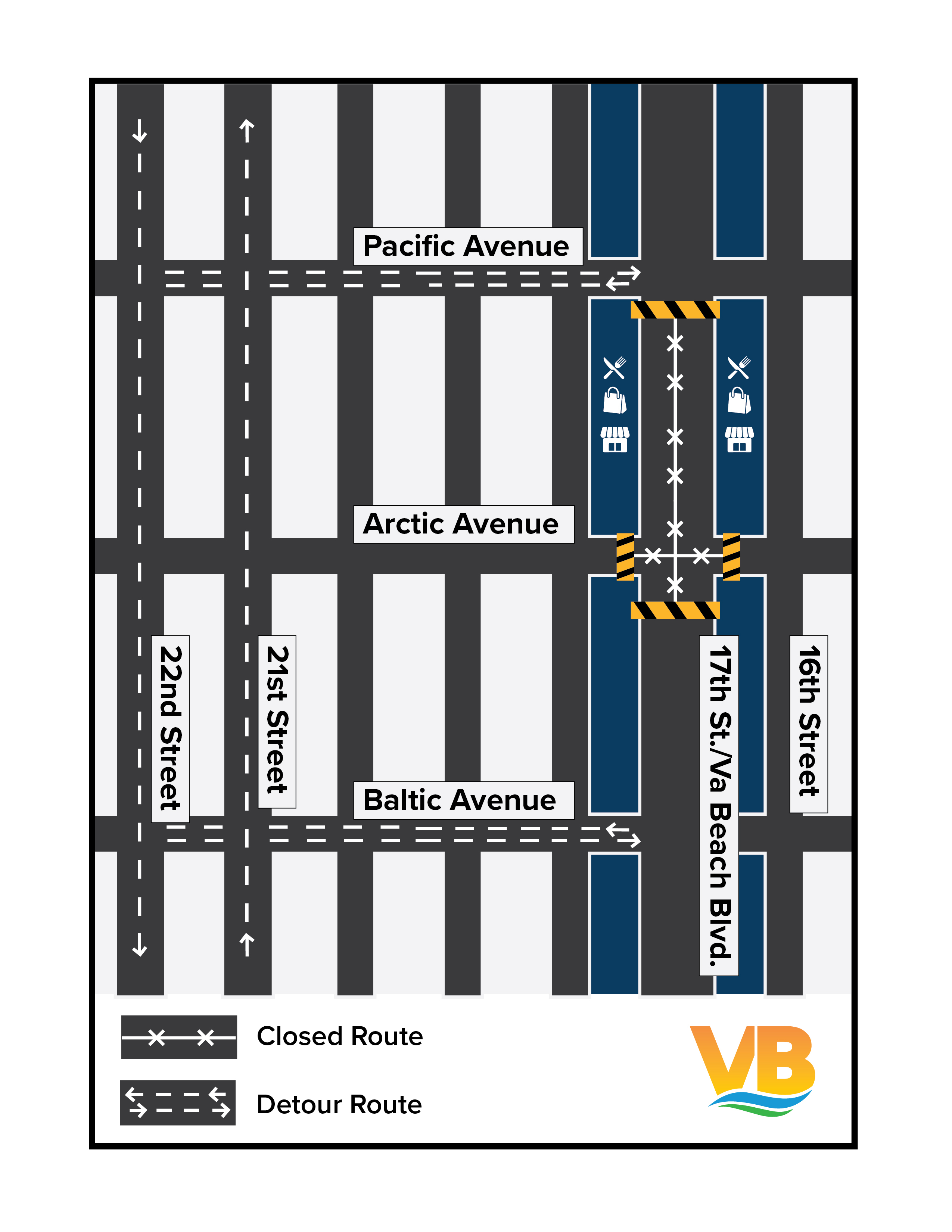 Beginning Monday, Jan. 26, 2026, at 9 a.m., construction activities related to the 17th Street/Virginia Beach Blvd. Improvements project will require temporary road closures and detours as part of ongoing utility improvements.